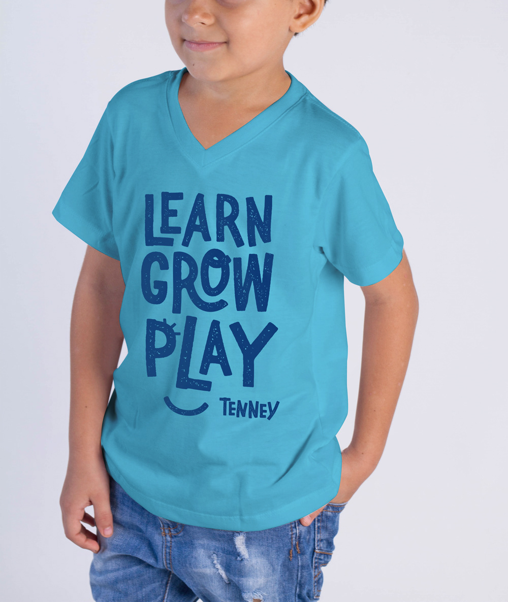 Tenney is a parent cooperative preschool that was started in the 70s by a group of parents. It is a special place and is near to our hearts. In a fundraising effort, I designed a new typographic lock-up as well as type-treatment for their motto, Learn, Grow, Play to be used on tees for the kiddos.